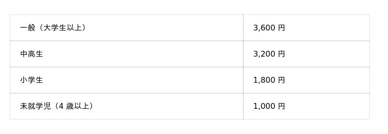 ※主催者が指定する障害者手帳(「身体障害者手帳」、「精神障害者保健福祉手帳」、「療育手帳」、難病の患者は「特定医療費受給者証」、「被爆者健康手帳」、「戦傷病者手帳」)をお持ちの方と、同伴者 1 名までは各券種当日券の半額料金。