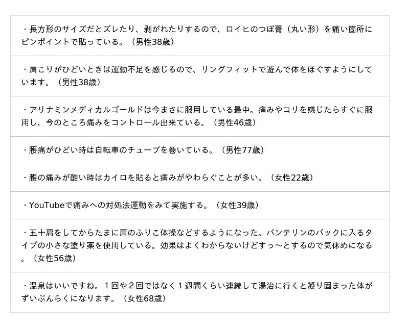 肩こり・腰痛の状況、対処方法などについて聞いています。調査結果をお知らせいたします。