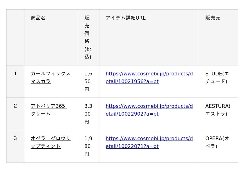 ・公式サイト :https://www.cosmebi.jp/?a=pt