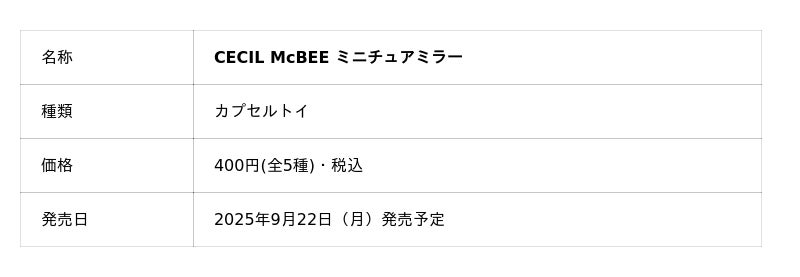 【2025年9月22日(月)発売予定】「CECIL McBEE ミニチュアミラー」発売予告のご案内