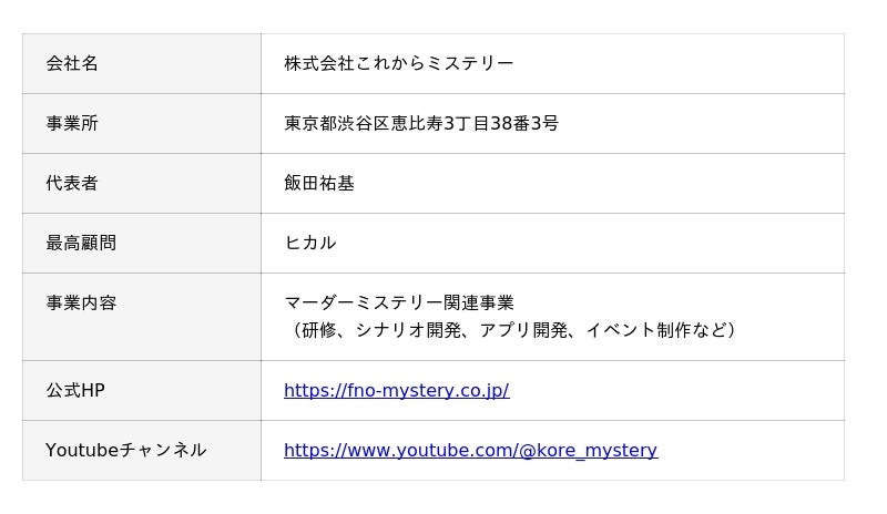 マーダーミステリー事業を展開する株式会社これからミステリー(本社:東京都、代表取締役:飯田祐基、最高顧問:ヒカル)は、体験型推理ゲーム『マーダーミステリー』のフランチャイズ店舗「これミス心斎橋店」を、2025年4月にオープンいたしました。