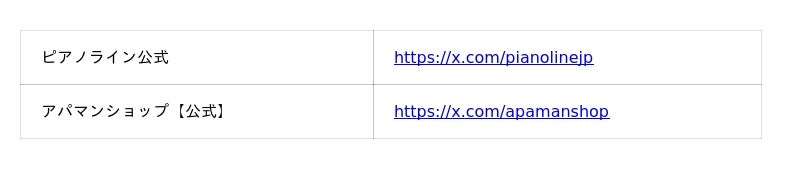 株式会社力匠(ノベルティ・販促品・啓発グッズのメーカー)が展開する「ピアノライン」の公式キャラクター。ピアノや音楽が大好きで、みんなの発表会や思い出づくりを応援するために生まれました。ちょっぴりおしゃべりで、楽しいことが大好き。最近はXの公式アカウントで、いろいろな人とお話をするのがマイブーム。