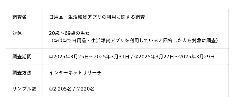 本調査では全国の成人男女2,205名に事前アンケートを実施し、そのうち日用品・生活雑貨店のアプリ※を利用していると回答した220名を対象に、さらに詳細な利用実態調査を行いました。本リリースでは調査結果をまとめたホワイトペーパーより、一部を抜粋して公開いたします。