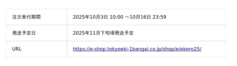 2025年10月3日(金)~2025年10月16日(木)の期間開催いたします。
