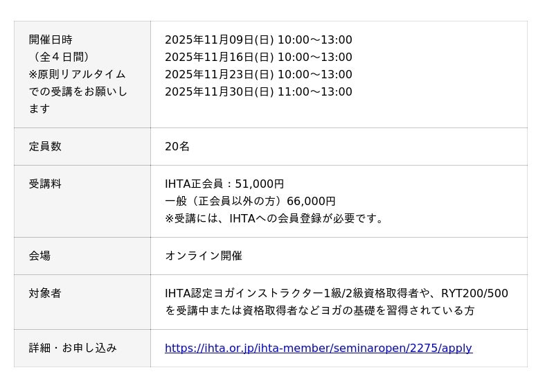 ・IHTAヨガインストラクター1級・2級養成講師