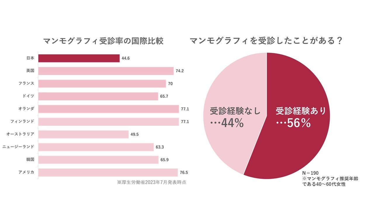 【クレアージュ・10月のピンクリボン月間に関する調査】女性の約8割が「マンモグラフィ受診推奨年齢」を答えられずマンモグラフィは実際どれくらい痛い?体験者の声を公開