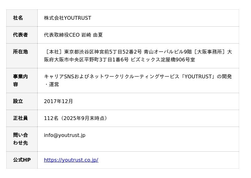 ▶ 採用企業様向けページ:https://lp.youtrust.jp/recruiter