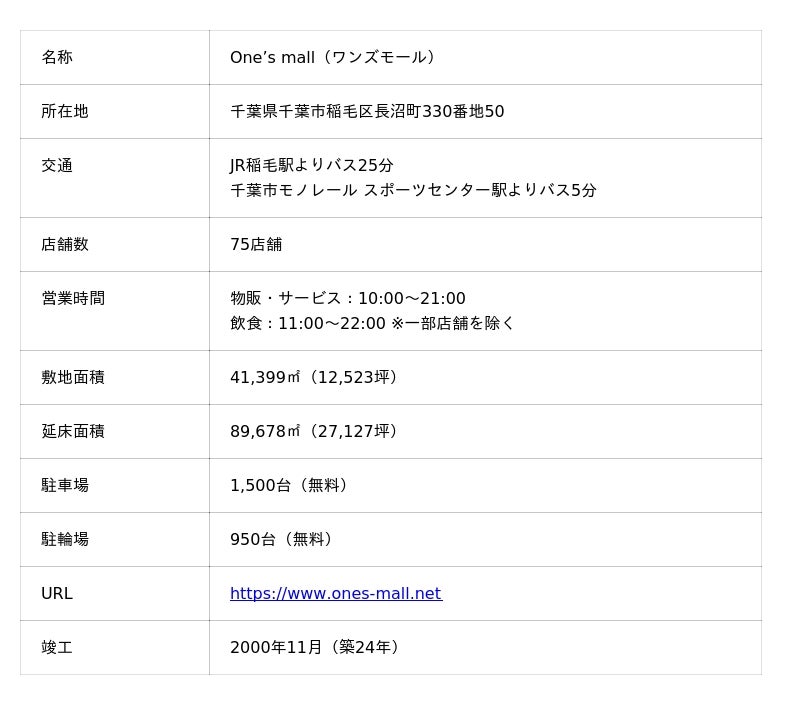 ヒューリック株式会社(本社:東京都中央区、代表取締役社長:前田隆也、以下「当社」)は、千葉県千葉市稲毛区の商業施設ワンズモール(運営:住商アーバン開発株式会社)について、エリア内唯一のエンタメ・バリューモールへ、住・遊・衣の三つの観点から「あって欲しい/あるべき」カテゴリーの導入・再編により“便利で楽しい”新たな施設を構築し、9月5日(金)にリニューアルオープンいたしました。施設のリニューアルに伴い、新たにオープンしたテナント11店舗に加え、来年春までに順次4店舗が追加オープンすることが決定しましたのでお知らせいたします。