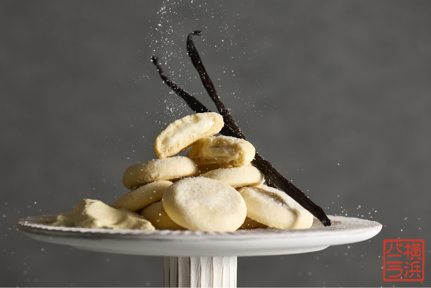 “とろ~り”と溶け合う、濃厚な特製バニラチョコレートクリーム。クリーミーかつ濃厚な横浜バニラ特製バニラチョコレートクリームを、サブレの中にたっぷりと包み込みました。一口頬張ると“とろ~り”と溶け合う濃密な甘さと、ふわりと香る芳醇なバニラの風味が優雅なひとときを飾ります。