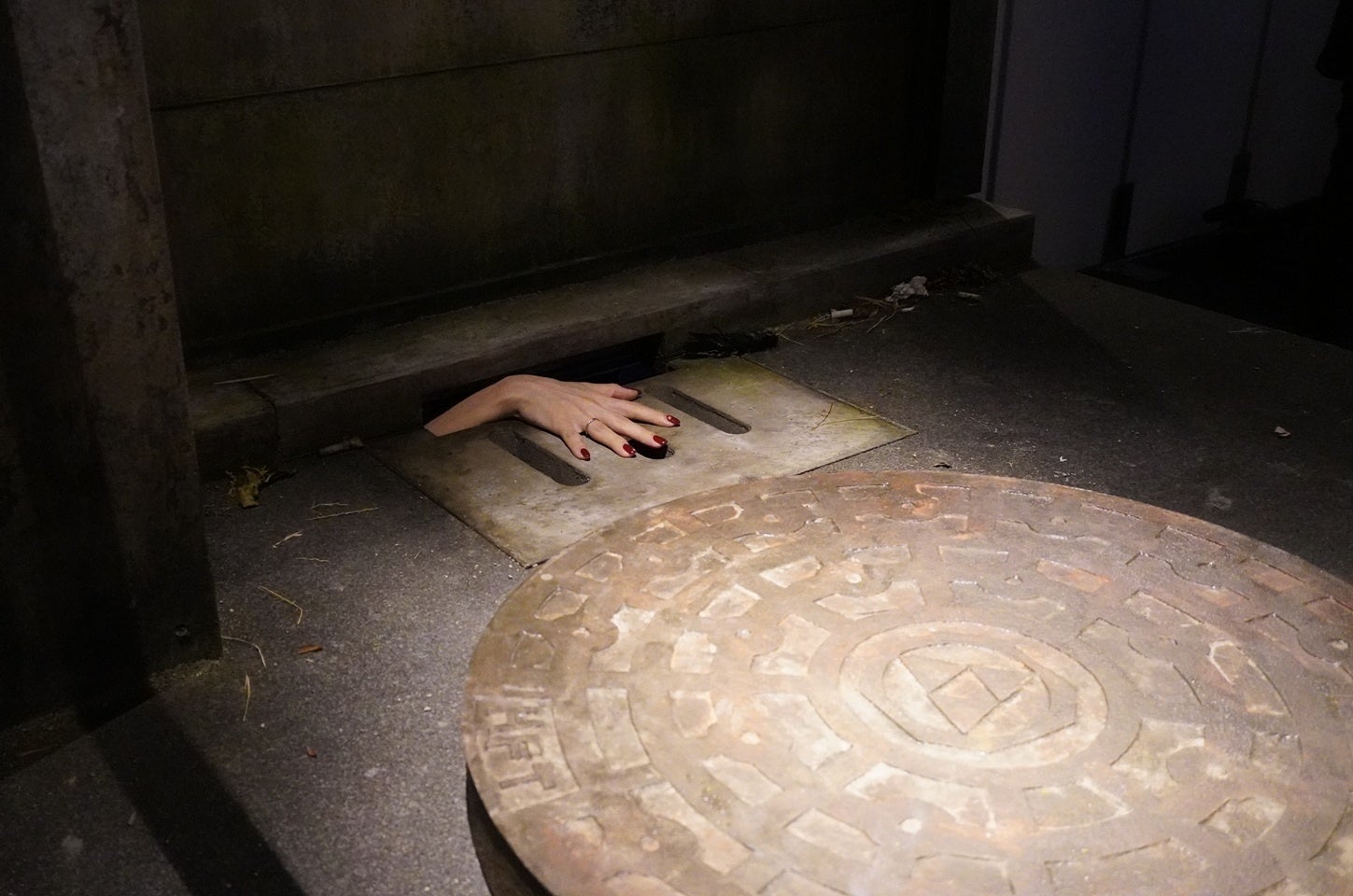 たとえば、今回の新規展示となる『マンホールに棲むもの』。精巧に作られたマンホールの下には【何か】が潜んでおり、日常にもこんなものがいるのではないかという不安がかきたてられます。造作のリアルさを楽しむだけではなく、裏の排水溝から自分の手を出し、モニターで様子を見ながら写真が撮れる仕掛けになっています。