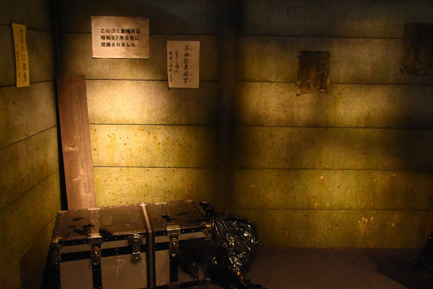 廃止されたゴミ集積所には得体のしれないゴミ袋や骨壺が転がり、さびれた掲示板には、「この人を探しています」の張り紙が。探し人は、この会場のどこかにいるのでしょうか……?