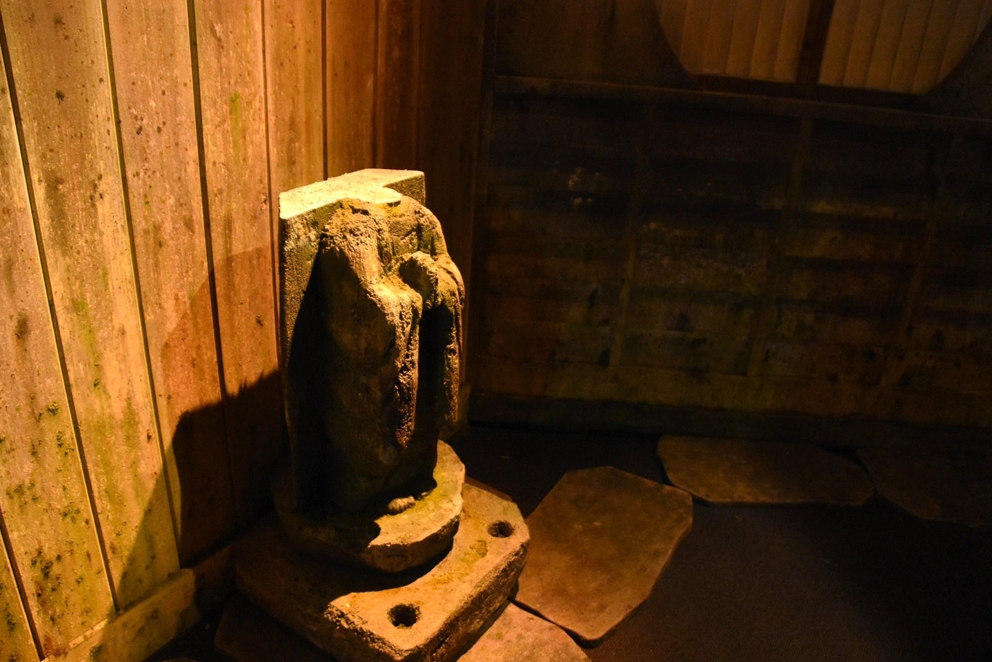 地蔵菩薩や木塀には苔むしたような「汚し」が施され、まるで何十年もそこに在ったかのような不気味な佇まい。