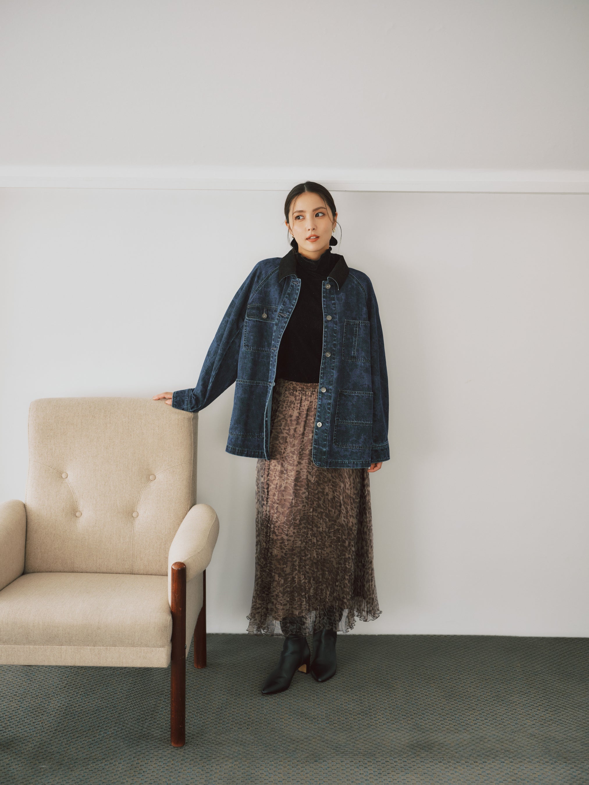 デニム、コーデュロイ、オーガンジー……秋冬ムードが高まる異素材MIXを堪能