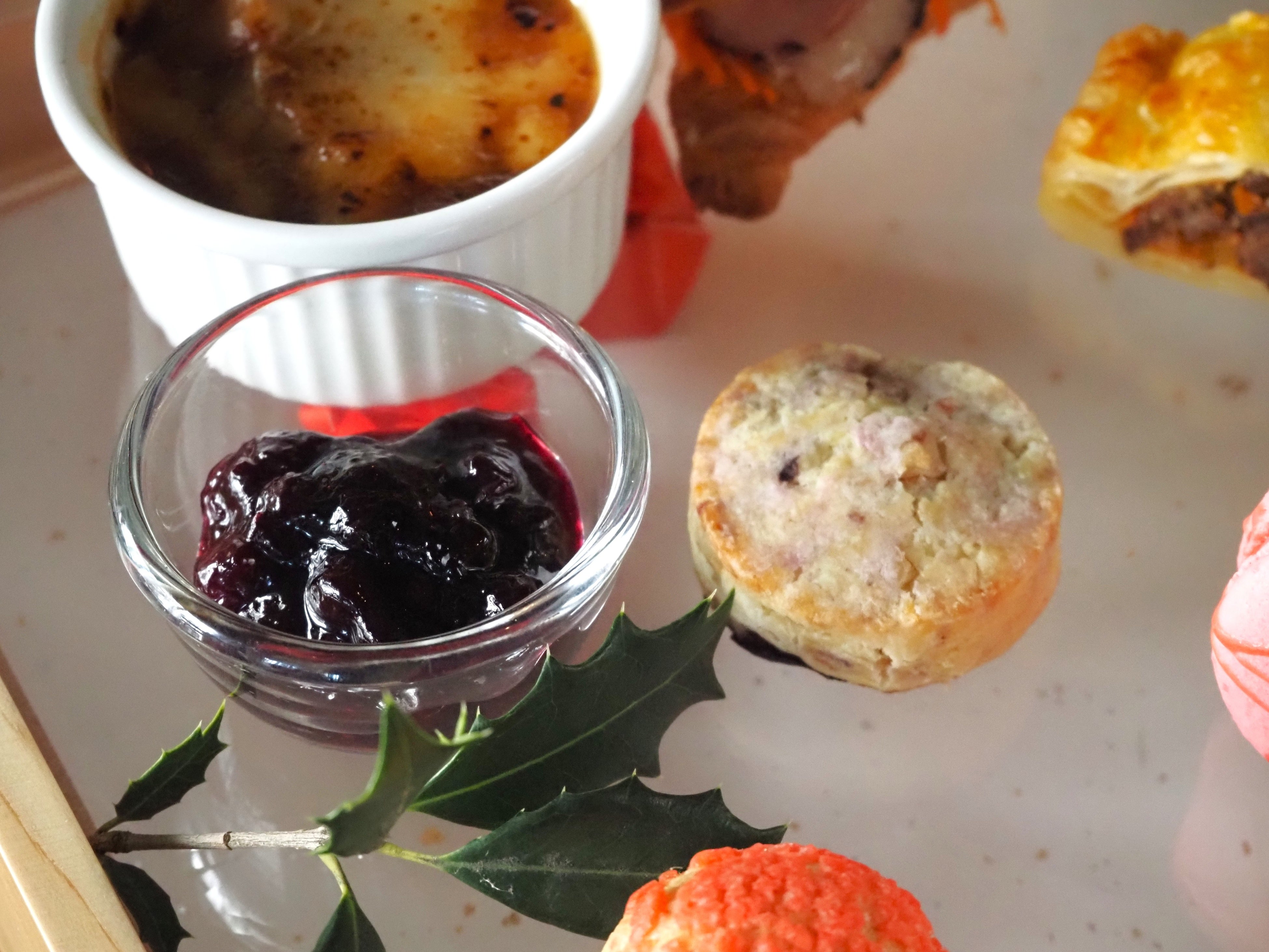他にも、ブルーベリーの甘さにクルミのサクサクとした食感と香りがアクセントのスコーンや、赤・白・緑のクリスマスカラーで構成された「ジェノベーゼソースのカプレーゼ」など、全6種類のセイボリー&スコーンをお楽しみください。
