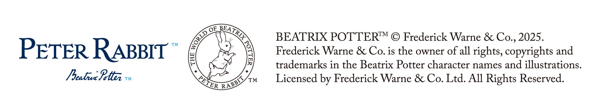 世界中で愛されている『ピーターラビットのおはなし』(原題The Tale of Peter Rabbit、作ビアトリクス・ポター(TM))の主人公。イギリス湖水地方の農園を舞台にくりひろげられる物語で、1901年250部の自費出版を経て、翌年1902年10月 全ての絵に色を付け、フレデリック・ウォーン社から刊行。2年足らずの間に5万部を超えるベストセラーとなり、多くのキャラクターが登場する絵本シリーズとなりました。現在この絵本シリーズは世界110か国48か国語に翻訳され、累計発行部数2億5,000万部以上の世界的ベストセラーとなっています。 ピーターラビットとユーモラスな仲間たちの物語は、100年以上にわたり世界中の人々に愛され続け、物語の舞台となった湖水地方は2017年世界文化遺産に登録となりました。 2026年にはポターの生誕から160周年を迎えます。