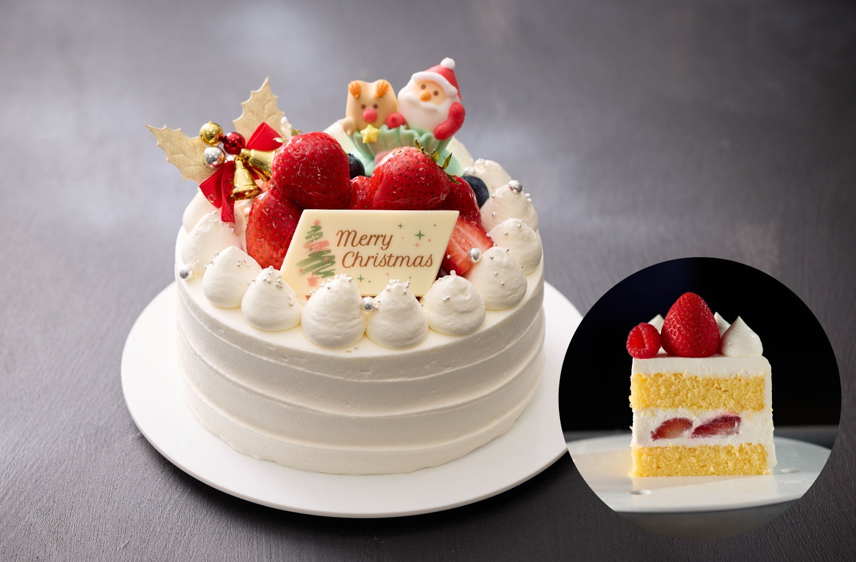 ケーキの箱を開けた瞬間、ぱっと広がる笑顔。その笑顔を思い浮かべながら、今年もクリスマスケーキをつくりました。子どもたちが大好きなサンタのオーナメントも、もちろん忘れずに。小さな幸せが、ひとつ、またひとつと積み重なって、特別な夜になりますように。このケーキが、皆さまの大切なひとときにそっと寄り添えますように── そんな願いを込めて、お届けします。