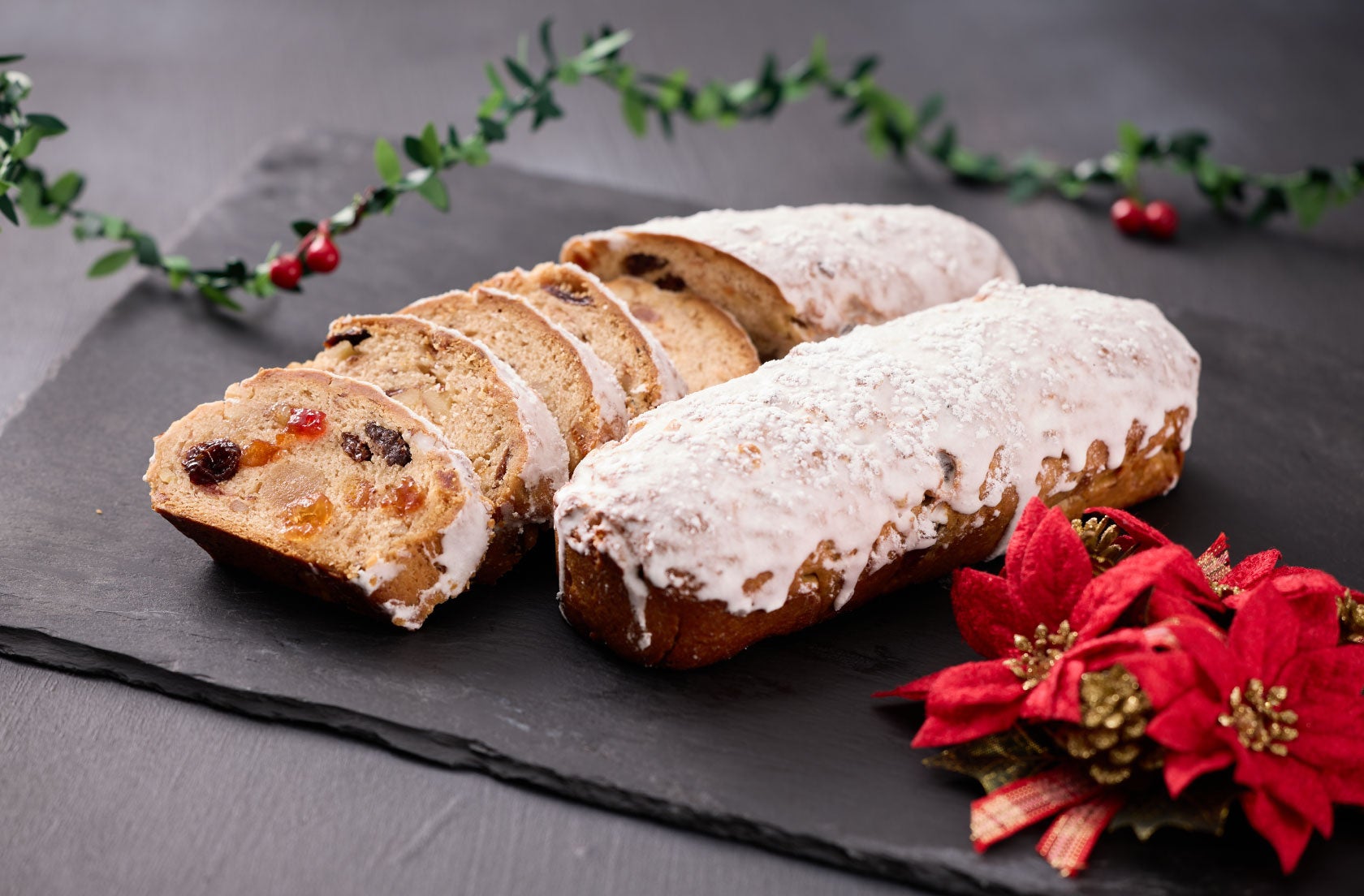 ラム酒に漬け込んだドライフルーツとナッツを練りこんだドイツとオランダのクリスマス定番の菓子パンです。