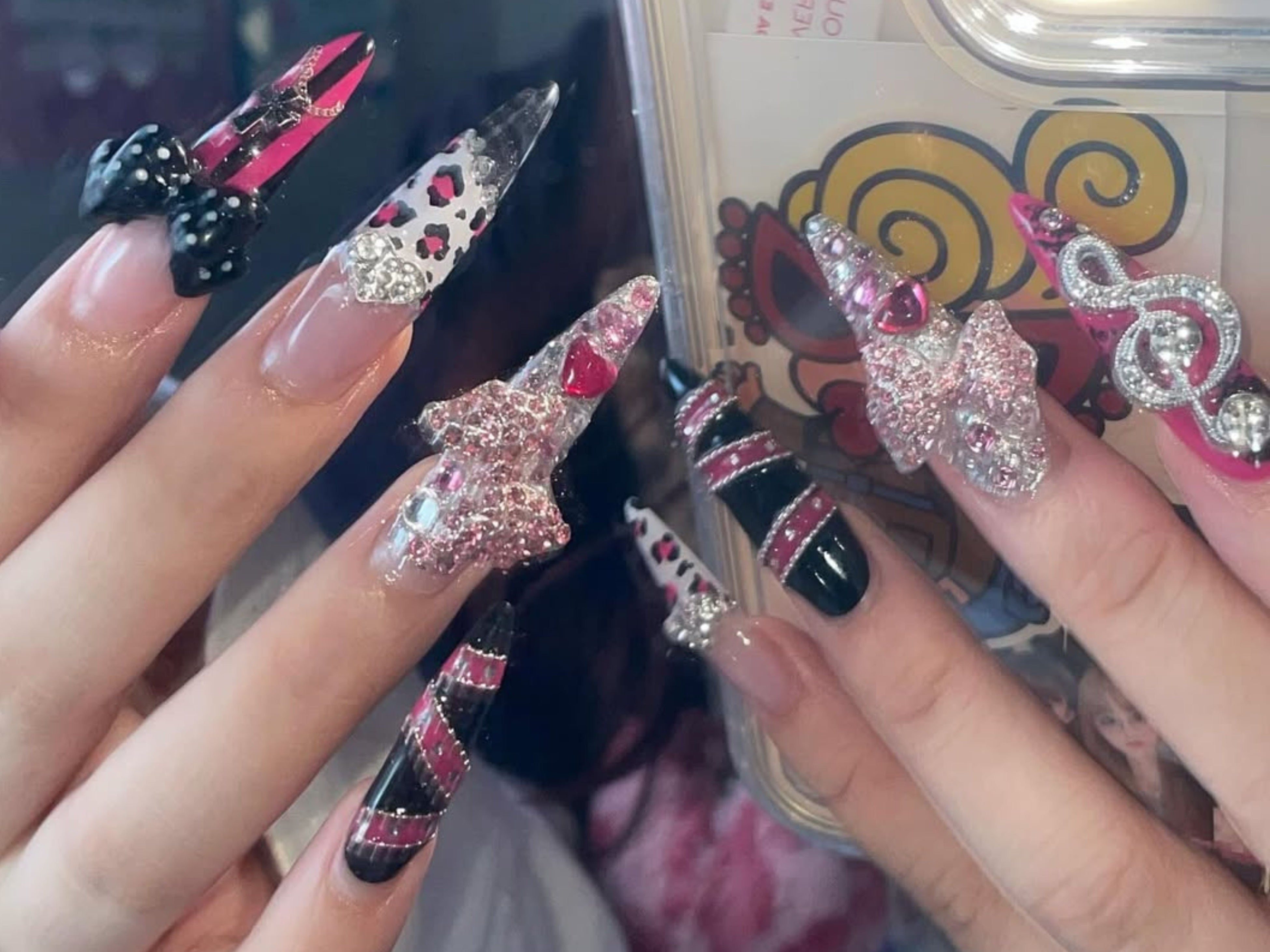 (1)個性的なネイルデザインロングネイルの長さ出しや、トレンドデザイン・パーツを取り入れ、お客様のファッションやイメージに合わせた個性的なデザインをお楽しみいただけます。