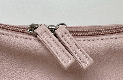 ダブルファスナーで開閉しやすく、荷物の出し入れもストレスフリー。内側にオープンポケット×2、ファスナーポケット×1を配置し、小物や貴重品の整理が簡単。