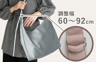 ショルダーベルトはアジャスター付きで、お好みに合わせてショルダー紐の長さを調整。斜めがけ・肩掛けの2WAY仕様。※ショルダーベルト調整幅:60~92cm