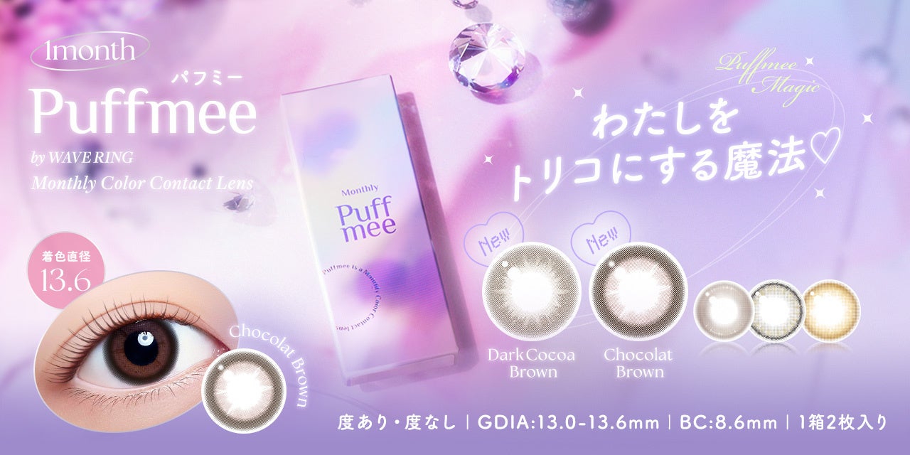 可愛さもコスパも抜群!ウルウルで魅力的な瞳を演出するマンスリーカラコン『Puffmee(パフミー)』に秋にぴったりなブラウン系の新色2色が10月14日(火)より発売!