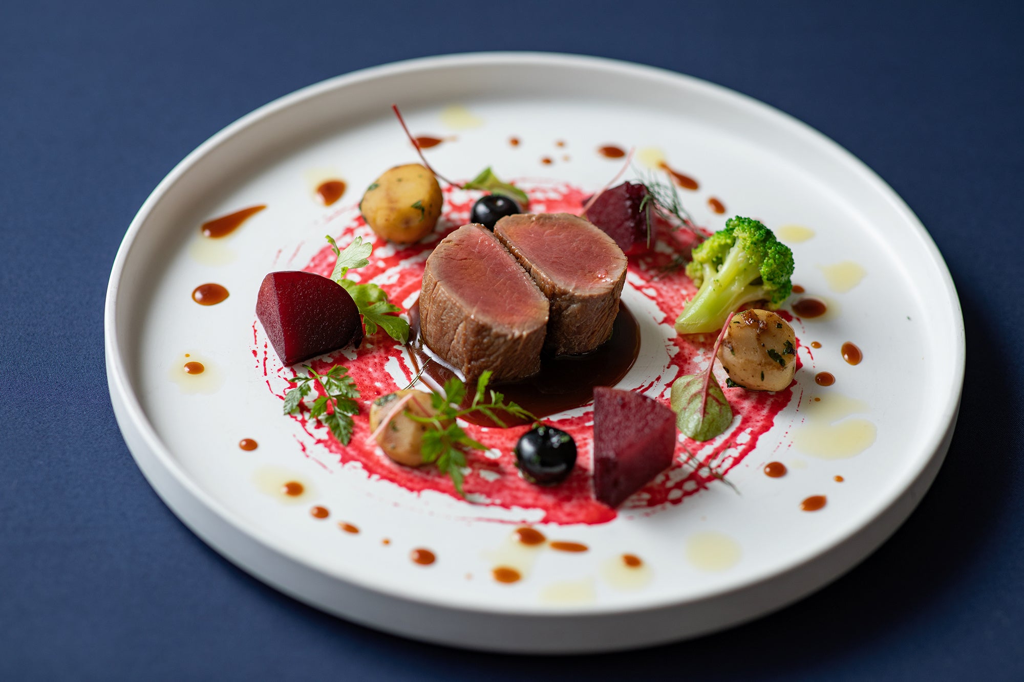 この一皿は、そんな“エシカル(倫理的)”な考えに基づいて生まれた料理。自然の恵みを感じながら、牛フィレ肉のように柔らかく、きめ細やかな肉質の鹿肉を、芳醇な赤ワインソースとともにお楽しみください。