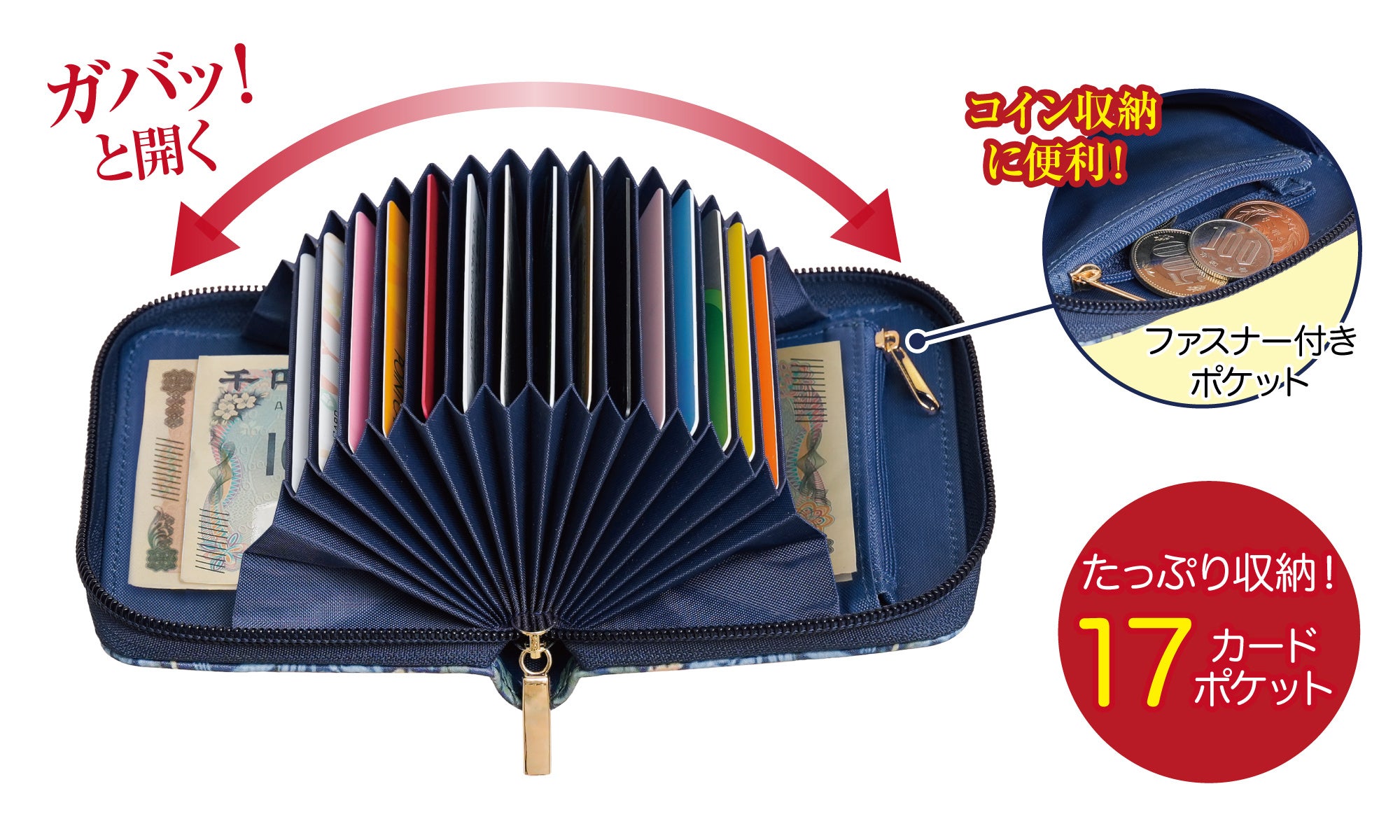 17ポケットでたっぷり収納!ジャバラ式なので開いた瞬間、中身がひと目で確認できて、取り出しも簡単♪