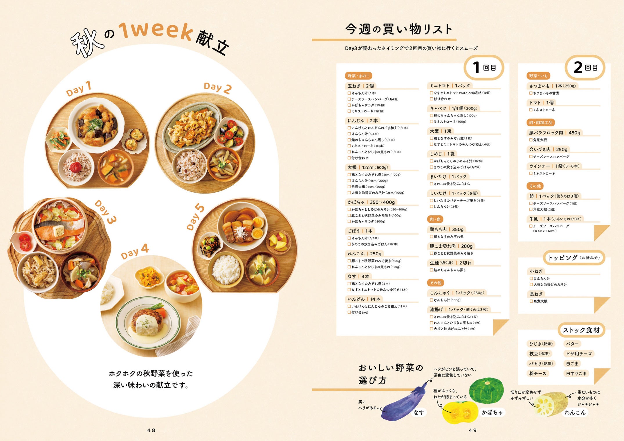 そんな声にお応えして、本書では128品のレシピを春・夏・秋・冬・通年の5シーズンに分け、平日1週間ずつの25献立にまとめました。