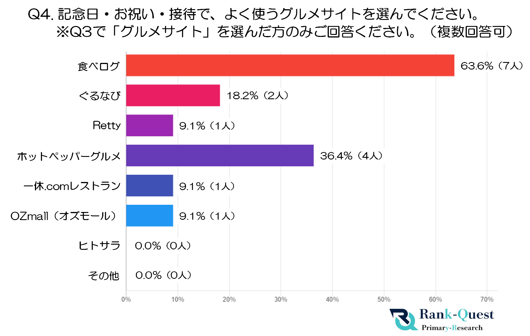4.記念日・お祝い・接待で、よく使うグルメサイトを選んでください。※Q3で「グルメサイト」と回答した人が対象(複数回答可:注4)