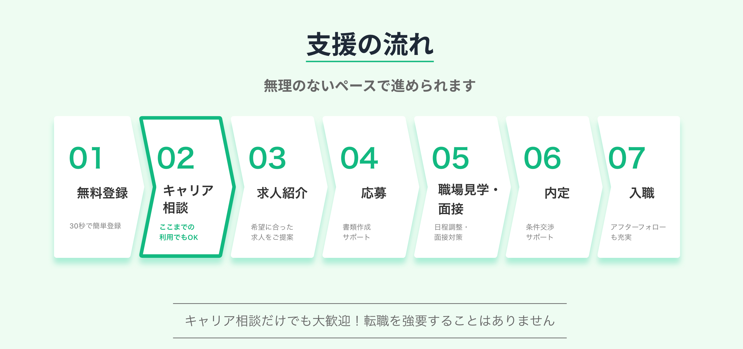 転職を前提とせず、現職での課題整理やキャリア設計までを含めて伴走。