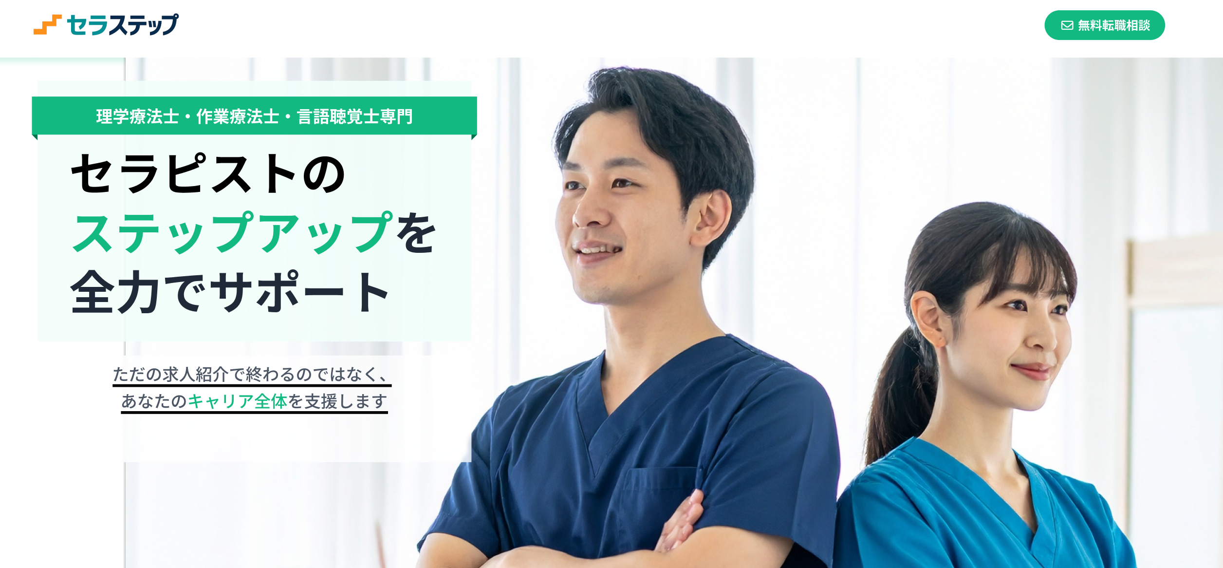 「セラステップ(https://therapist-step.com/)」は、理学療法士・作業療法士・言語聴覚士に特化したキャリア支援・転職支援サービスです。単なる求人紹介にとどまらず、「ジョブ(仕事)」ではなく「キャリア(人生)」という長期的な視点から、一人ひとりが納得して歩める選択を後押しして参ります。