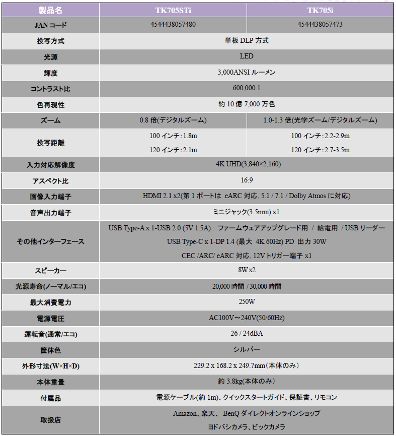TK705STi:https://www.benq.com/ja-jp/projector/cinema/tk705sti.html