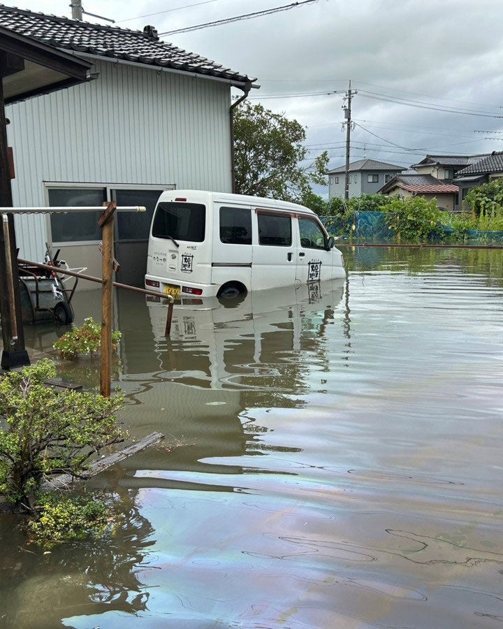(株)金沢大地(金沢市八田町東9)は、有機栽培で国内規模最大の広大な農地を持ち、加工品も自社農場の原材料までトレースできる、「生産者の顔が見える」食づくりをしています。令和7年8月6日からの線状降水帯の影響により、金沢大地の社屋と倉庫が浸水。幸いにも人的被害はありませんでしたが、限りある貴重な原材料や商品の数々に水がつき、大量の廃棄処分となりました。