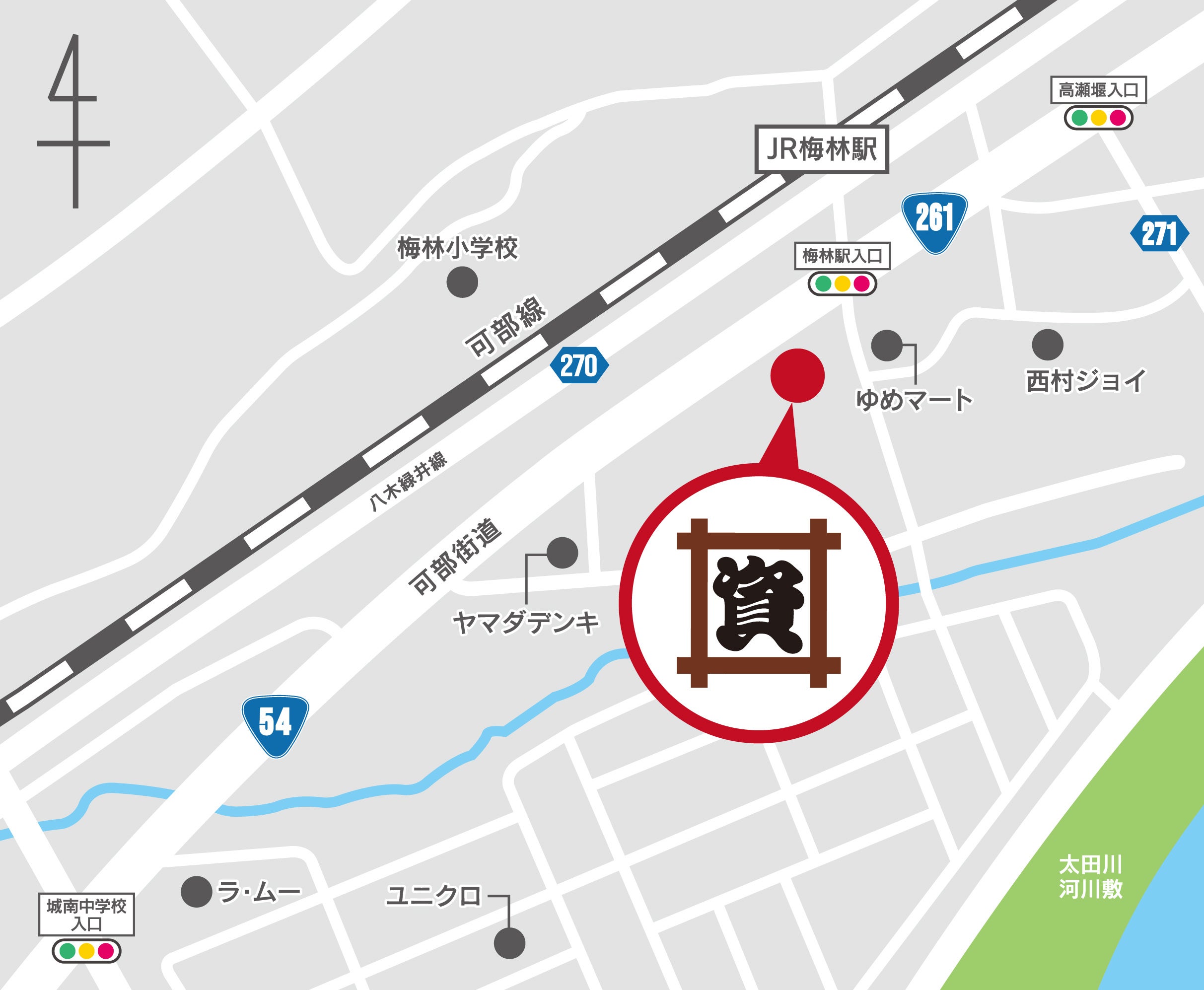 国道54号線沿い、JR梅林駅からも徒歩7分!
