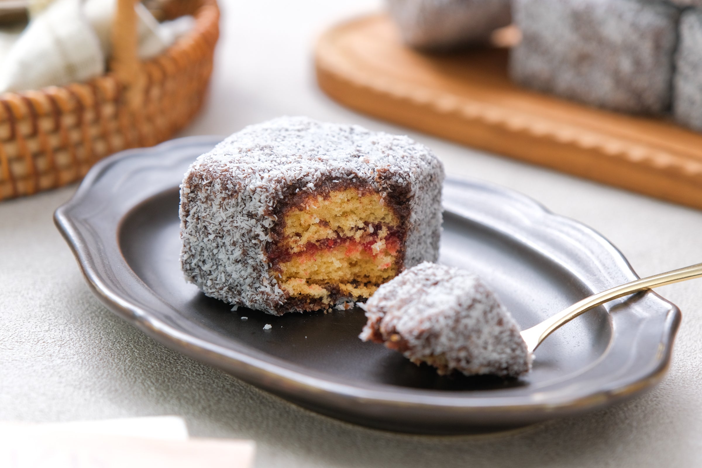 「ラミントン」とは、オーストラリアで長く愛されてきた伝統菓子。ふわふわのスポンジをチョコやジャムでコーティングし、細かいココナッツで包んだスイーツです。