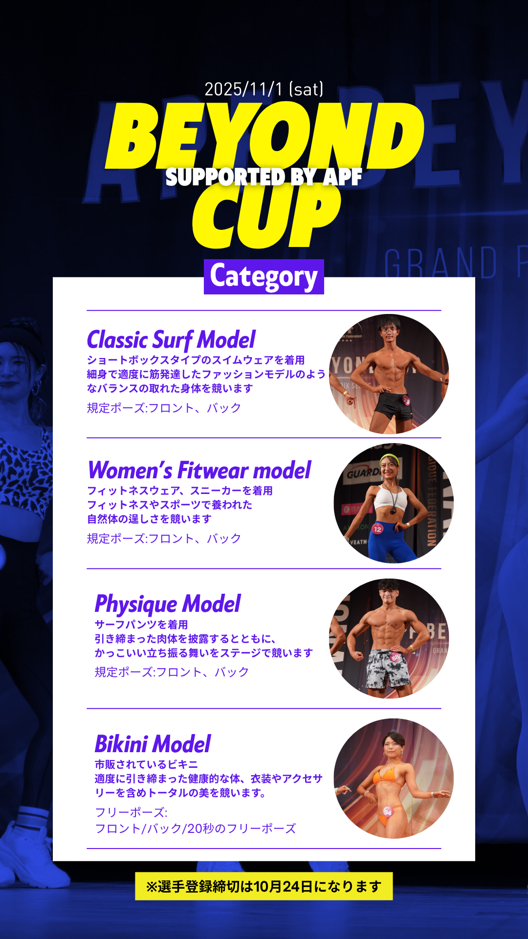 APF公式サイトにて販売開始:https://apf.fitness/contest/apf-beyond-cup-2025/エントリー状況と大会規模