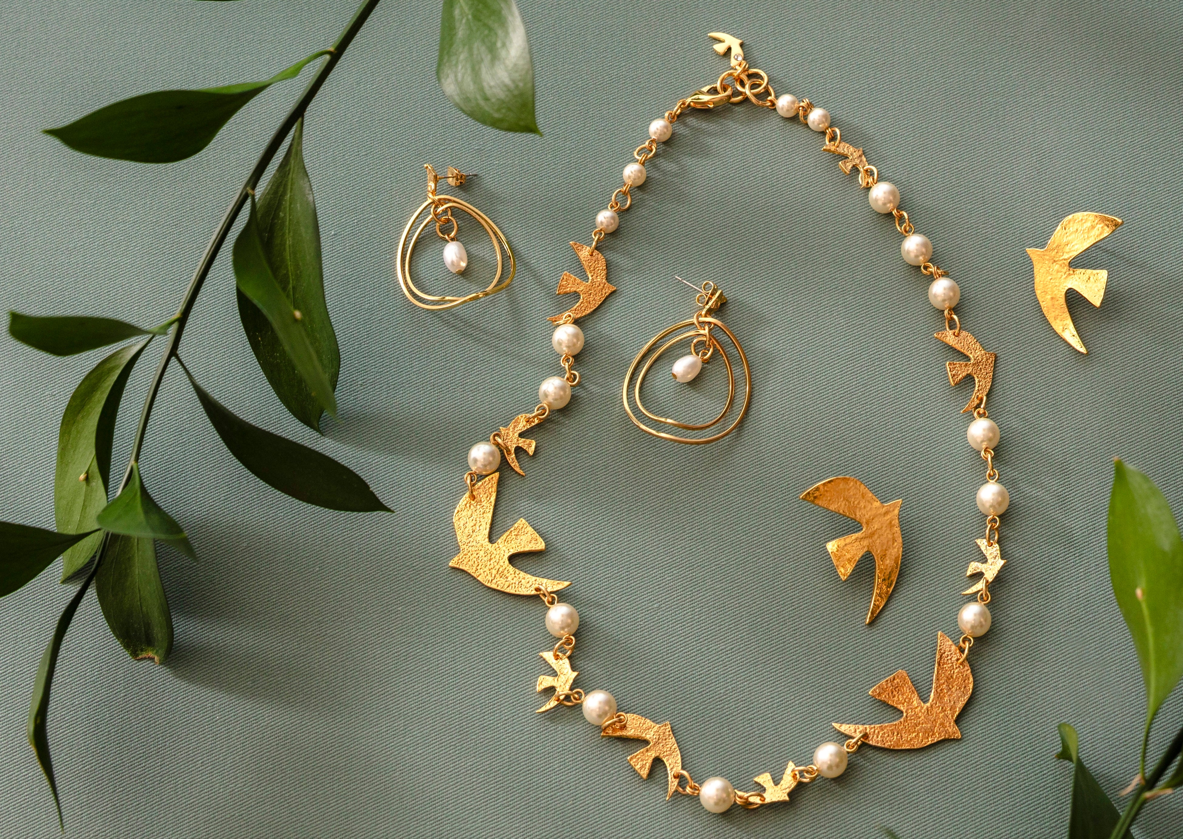 また、人気のパールのコレクションもさまざまなアイテムやデザインでラインナップしました。トンボモチーフや ラ・コロンブ(鳩)、揺れるデザインなど、どれをとってもエレガンスの中にパリ的なエスプリがひとひねり効いた秋のコレクションは、定番コレクションと併せて、オンラインショップのほか、セシル・エ・ジャンヌ青山店や、10月15日(水)にオープンしたばかりの伊勢丹立川店でも展開しています。