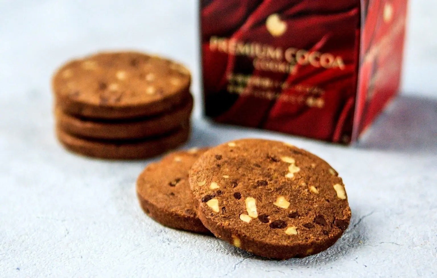 北海道産発酵バター100%使用した贅沢クッキー、まるでチョコをそのままかじっているようなチョコ感。高カカオチョコと北海道発酵バターをたっぷり練り込んだ生地にココナッツシュガー・黒糖でコクと深み、極少量のバニラで甘い香りを。極わずかな量のバニラがこのクッキーの美味しさを引き上げています。