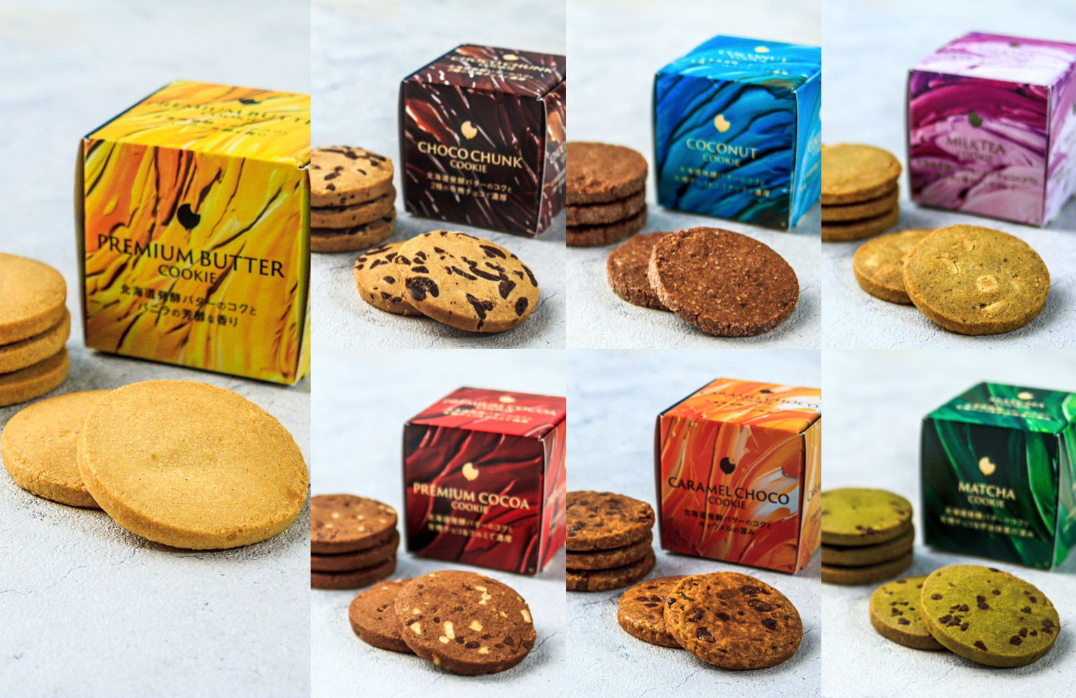 北海道産発酵バター100%使用した贅沢クッキー、焦がしキャラメルの深みのある味わい。プレーンが最も乳質の高さ、芳醇な自然の甘みをダイレクトに堪能できます。バニラがふわりと香り、ゲランドの塩で甘じょっぱさを感じる味わいがクセになります。