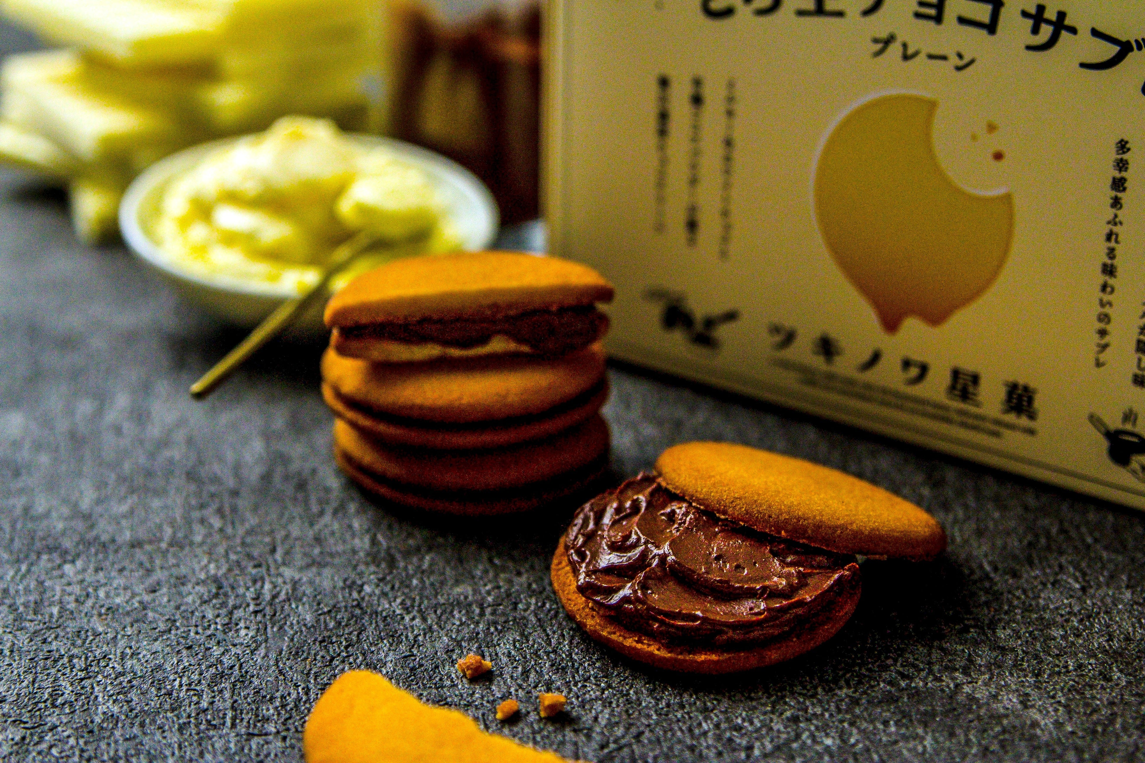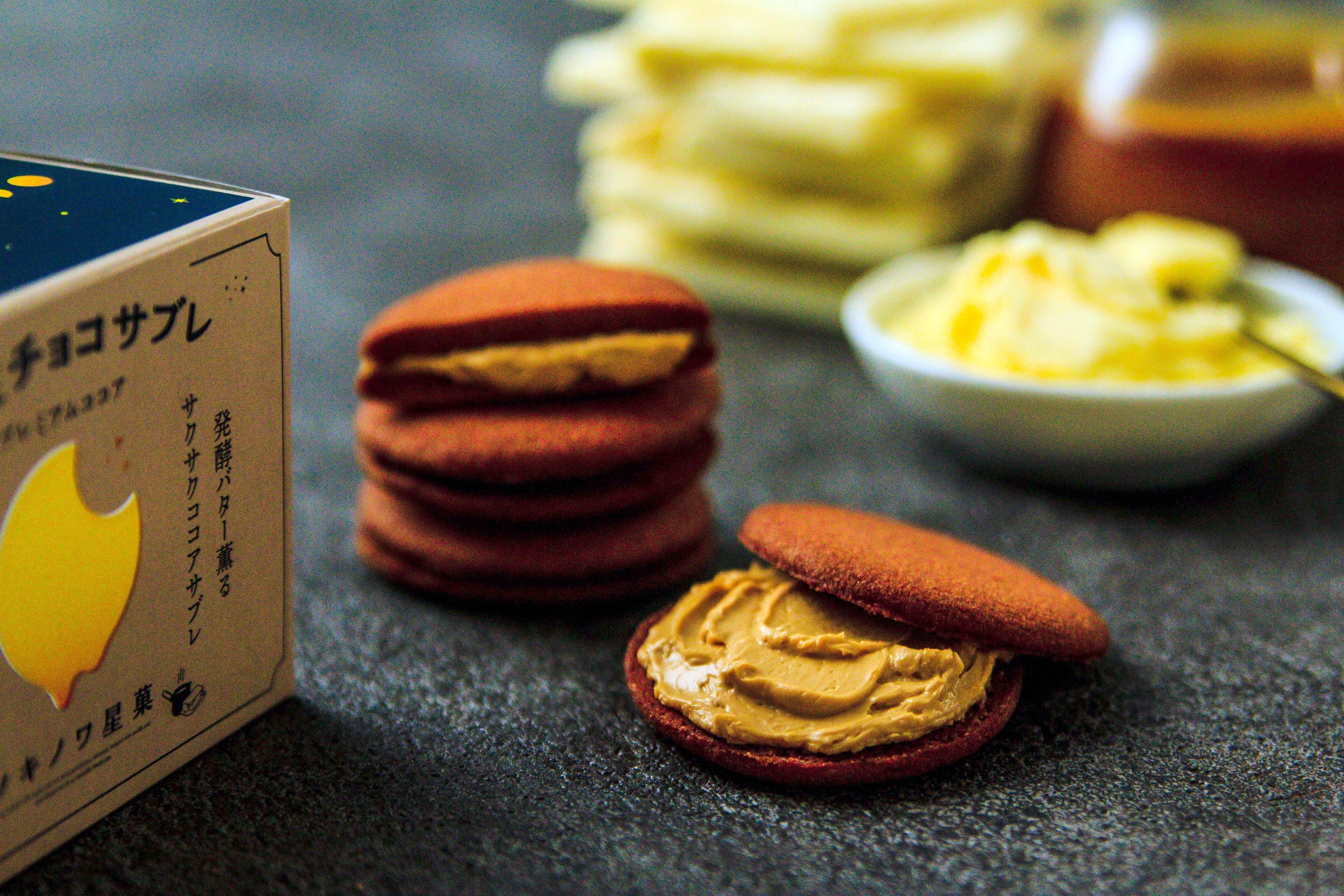 ホワイトチョコレートと有機ココアパウダーを合わせた濃厚チョコクリームを発酵バター薫るサクサクサブレでサンドしています。