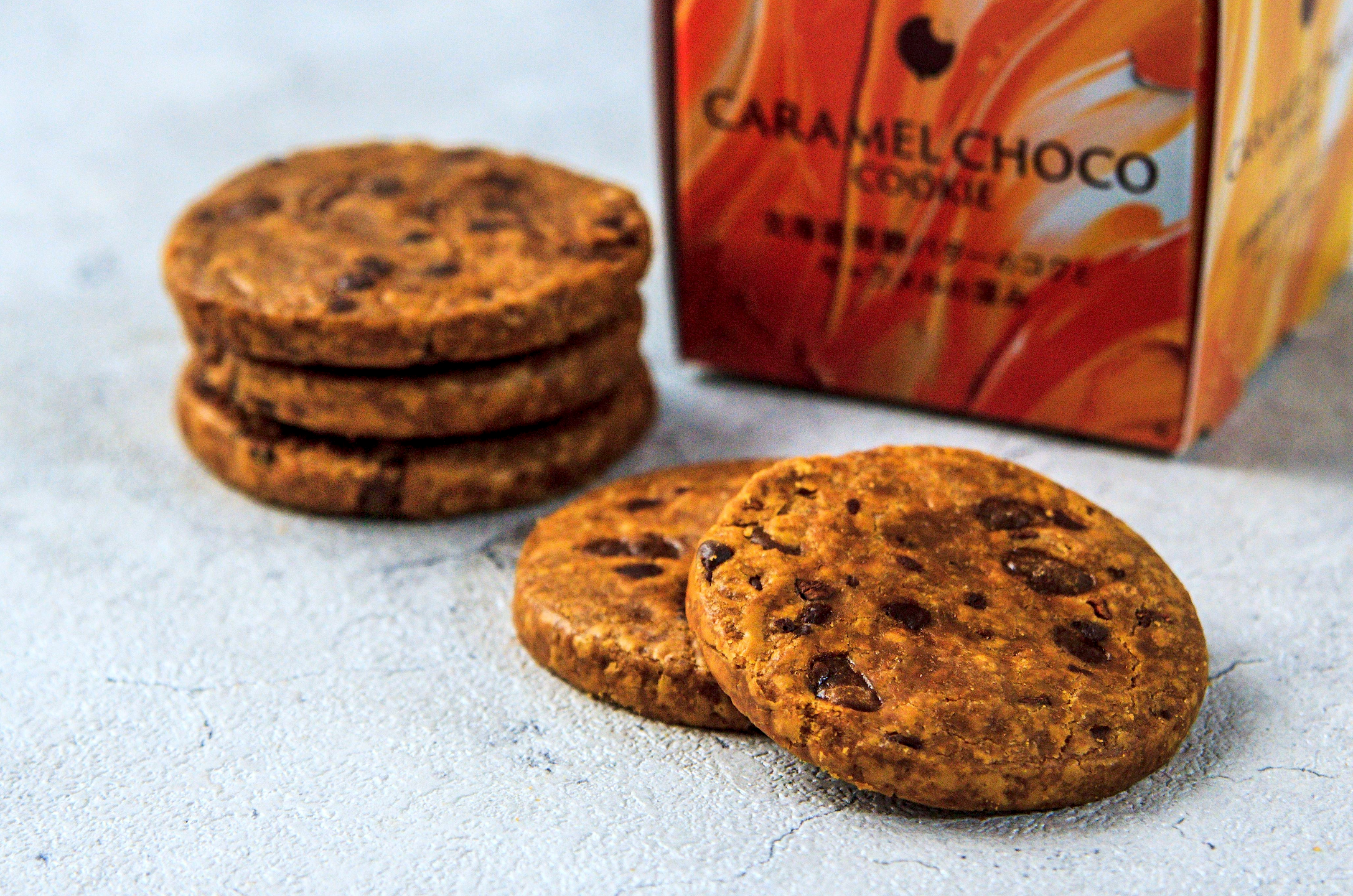 北海道産発酵バター100%使用した贅沢クッキー、クルミとドミニカ産カカオのチョコチップがたっぷりコクのあるクッキー。1枚、2枚と止まらなくなる食感と味わい。有機カカオ使用した豊かな風味のココアパウダーをたっぷり。バニラ、アーモンドを配合したリッチな生地にビターキャラメルのほろ苦い深みがアクセントに。