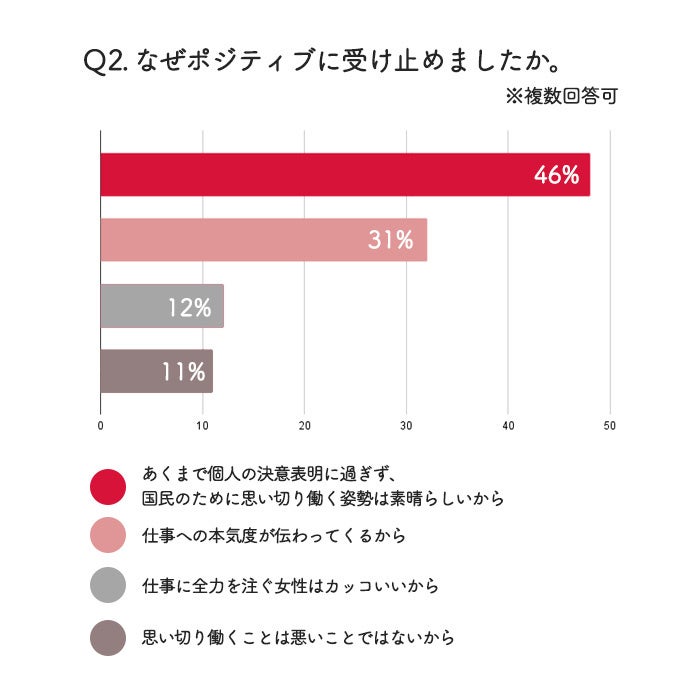ポジティブに受け止めた理由としては、「個人の決意表明として捉えたい」(46%)、「仕事への本気度が伝わる」(31%)などが上位に挙がりました。