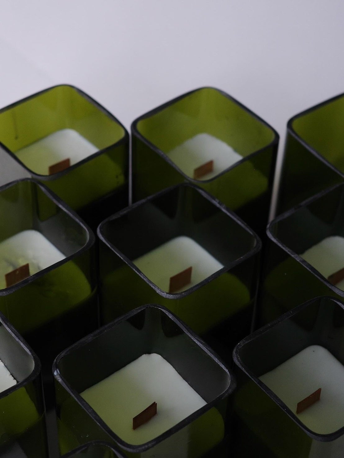 ソイワックスとココナッツワックスをブレンドし、チェリーウッドの芯を使用したキャンドル。 シンプルでナチュラルな素材のみで丁寧に仕上げました。 ワインボトルをアップサイクルしたガラスを使用し、オリーブガラス越しにやわらかな灯りが空間を包みます。 香りをつけていないため、食事の時間や就寝前にも心地よく寄り添います。