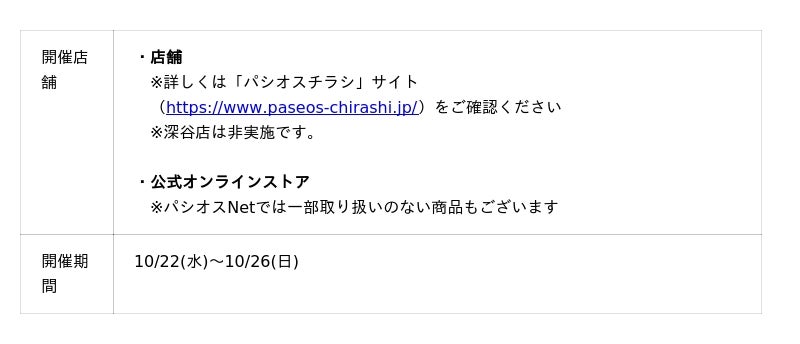 ![[10/22(水)~10/26(日)]【推しアイテム84選】をファッションプラザ[パシオス]にて開催!](https://prtimes.jp/img/120375/81/resize/d120375-81-2e05c0f98472bf6a7e5a-5.jpg)