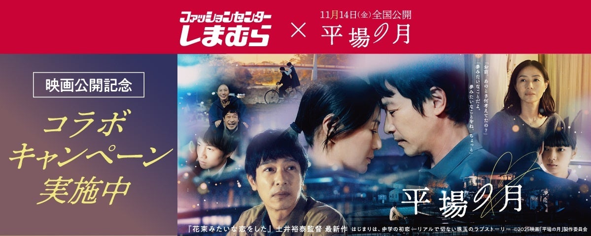 株式会社しまむら(本社所在地:埼玉県さいたま市大宮区北袋町1-602-1、代表取締役:高橋 維一郎)は、ファッションセンターしまむらで11/14(金)公開の映画『平場の月』とのコラボキャンペーンを実施することをお知らせいたします。