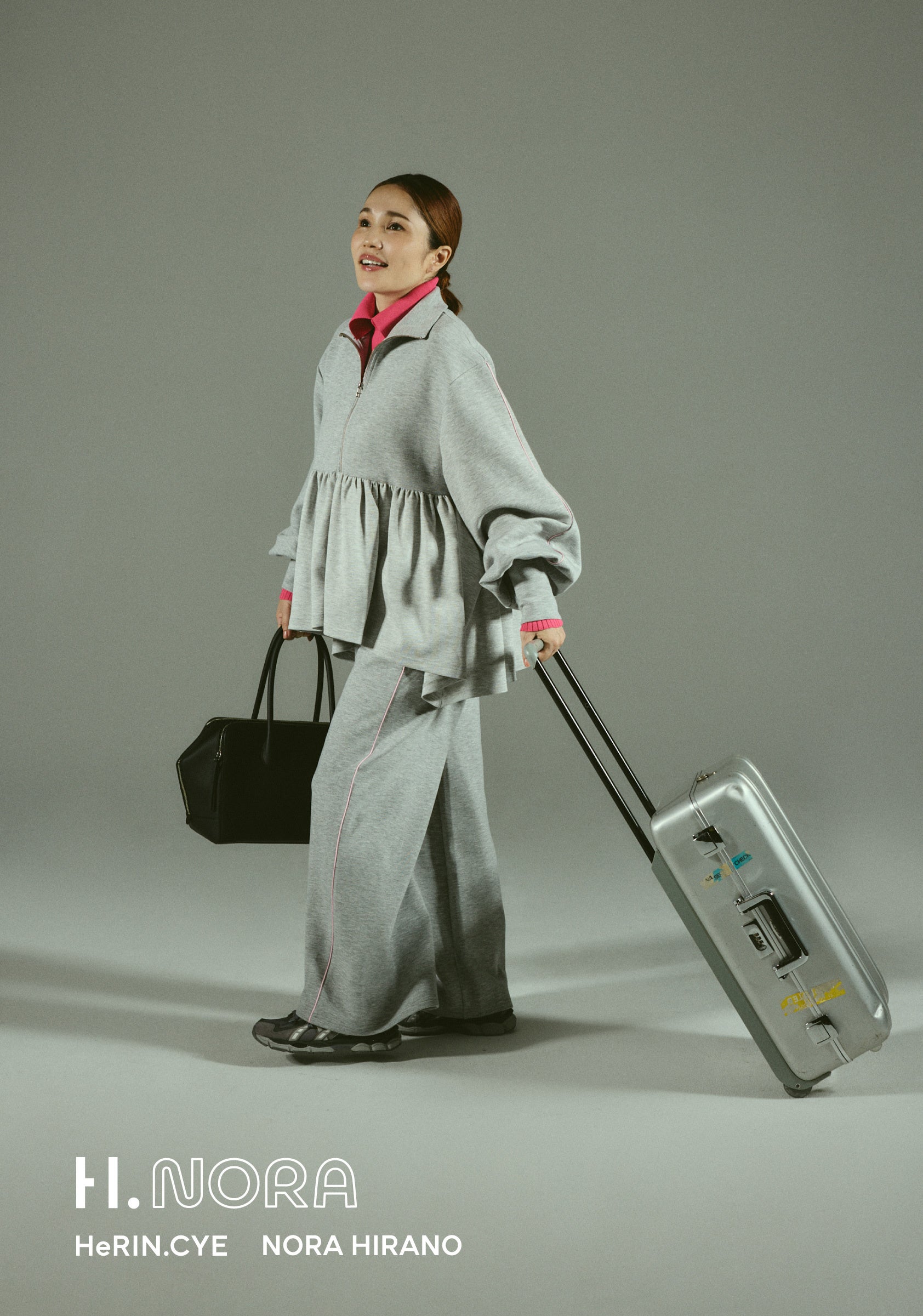 この度、HeRIN.CYEは、お笑いタレントの平野ノラさんとのコラボレーションアイテムを発売いたします。コラボレーションのきっかけは、ノラさんが以前からプライベート・仕事でHeRIN.CYEを愛用し、SNSにて発信。その後、2024年にHeRIN.CYEのインスタライブに出演。ディレクター寿浦まどかと交友を深め、ノラさんが構想していた洋服の話をしたエピソードから始まります。お互いにママであり、働く女性として日々を駆け抜ける中で頑張る女性たちに寄り添う服を届けたいという想いが重なり「大人が着られる品格のある着心地の良いジャージとワンピースを作ろう!」という想いが一致して生まれたのが今回のコレクションです。ノラさんがブランドをイメージし、日常シーンで使えるワンピース・ブルゾン・パンツの3型を展開します。