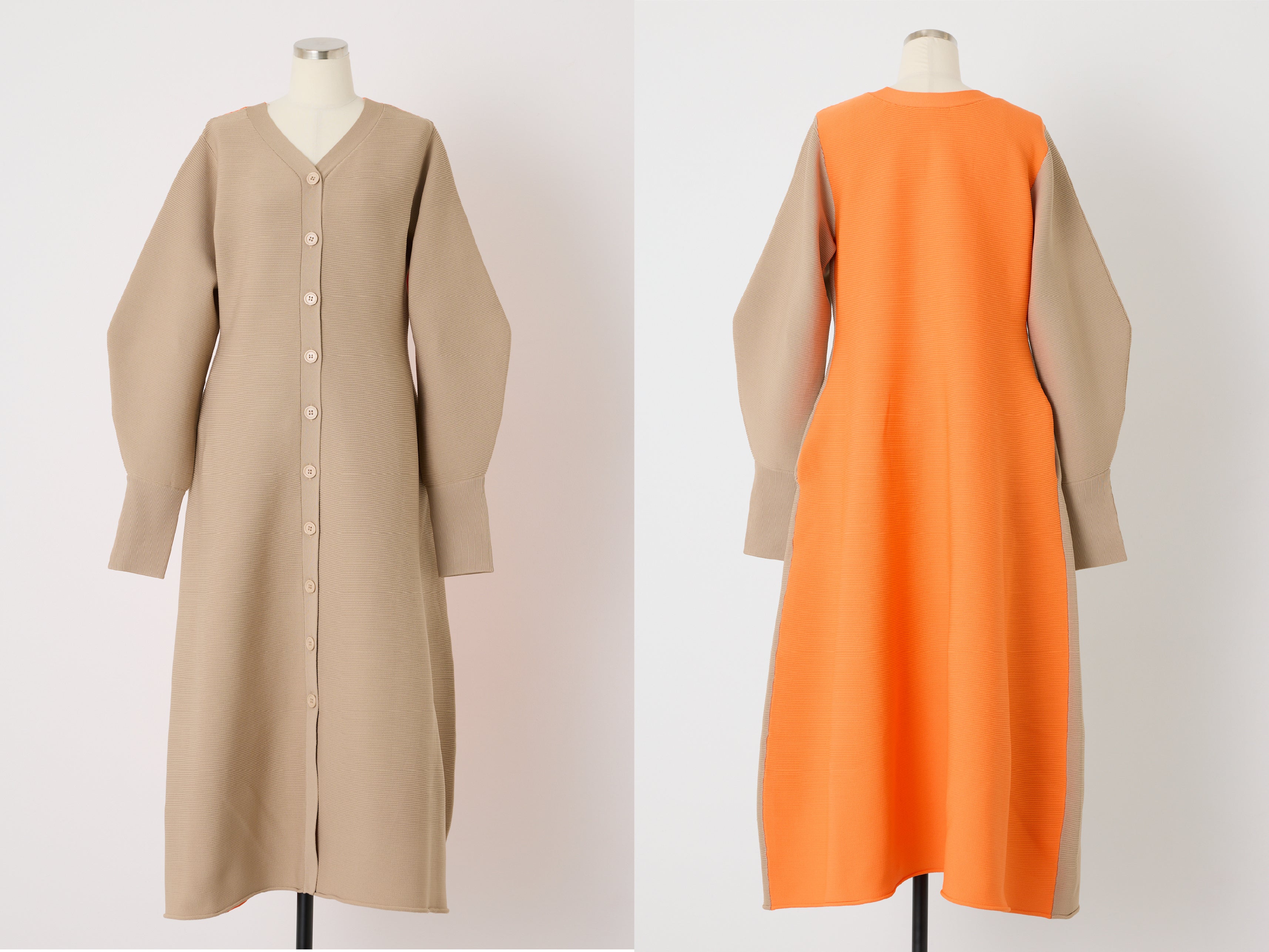 また、袖に隠しカラーを閉じ込めました。ワンピース・ロングカーディガンと一着で4wayです!世界初!ではないでしょうか。作るからには1wayではなく着回しも重視しました。