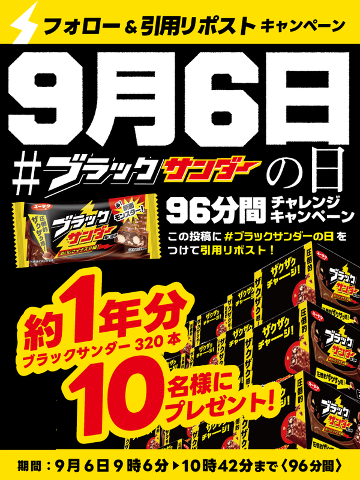 有楽製菓は、「クロ」と読めることから9月6日を「ブラックサンダーの日」として2021年に制定し、毎年ユニークな企画を展開しています。今年は“ブラックサンダー断面モンスター”をテーマにした参加型キャンペーンを実施いたしました。