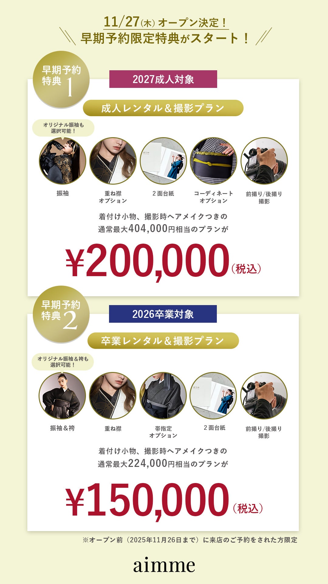 オープンに先立ち、10月1日より振袖・卒業袴の先行予約受付を開始しており、池袋店限定の“早期予約特典”を展開いたします。
