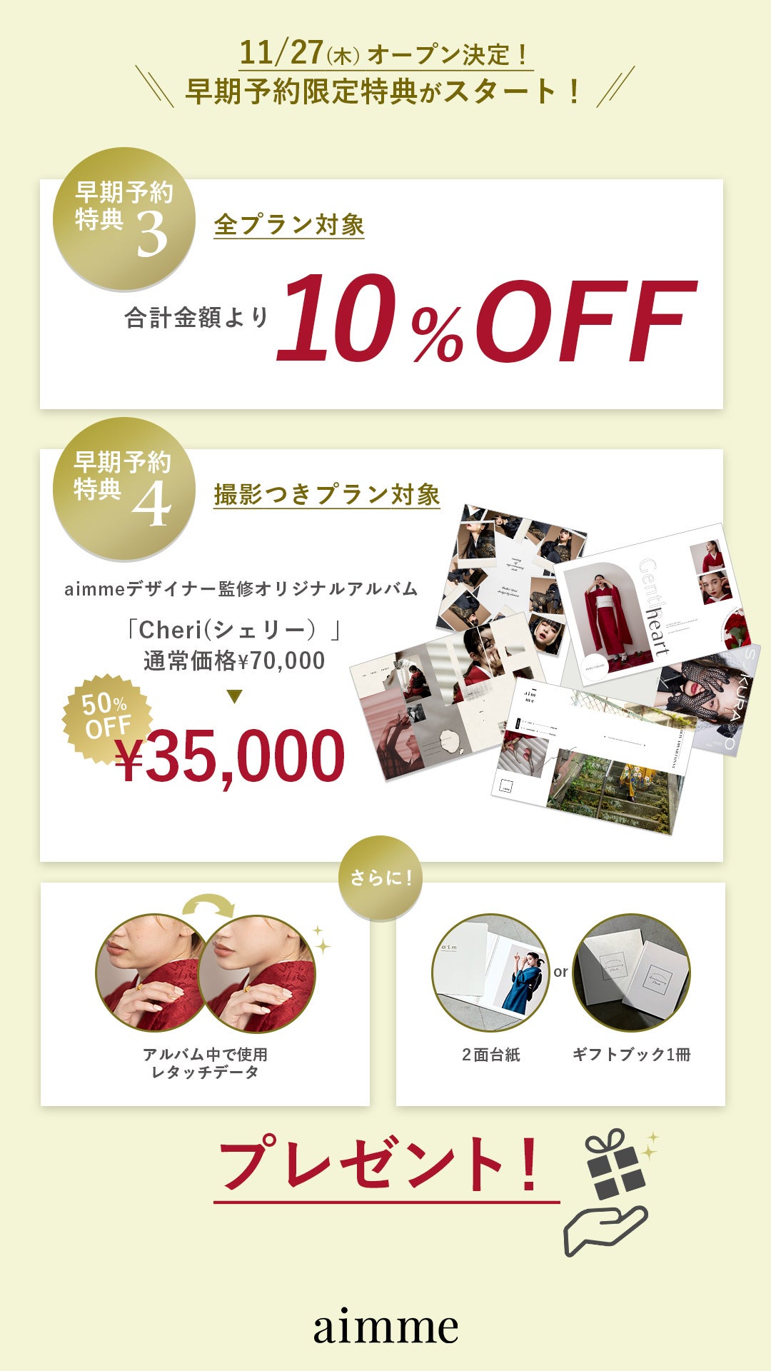 aimme東京池袋店オープンを記念し、先行予約期間中にご契約いただいたお客さまを対象とした限定特典を複数ご用意しております。